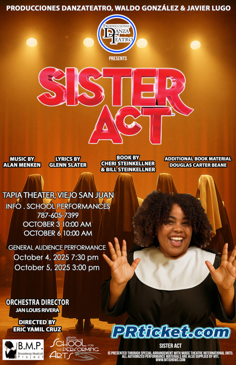 SAN JUAN – Producciones Danzateatro PR Inc., prestigiosa casa productora especializada en teatro musical dirigida por Waldo González y Javier Lugo, presenta el musical Sister Act del 3 al 6 de octubre de 2025 en el histórico Teatro Tapia del Viejo San Juan.